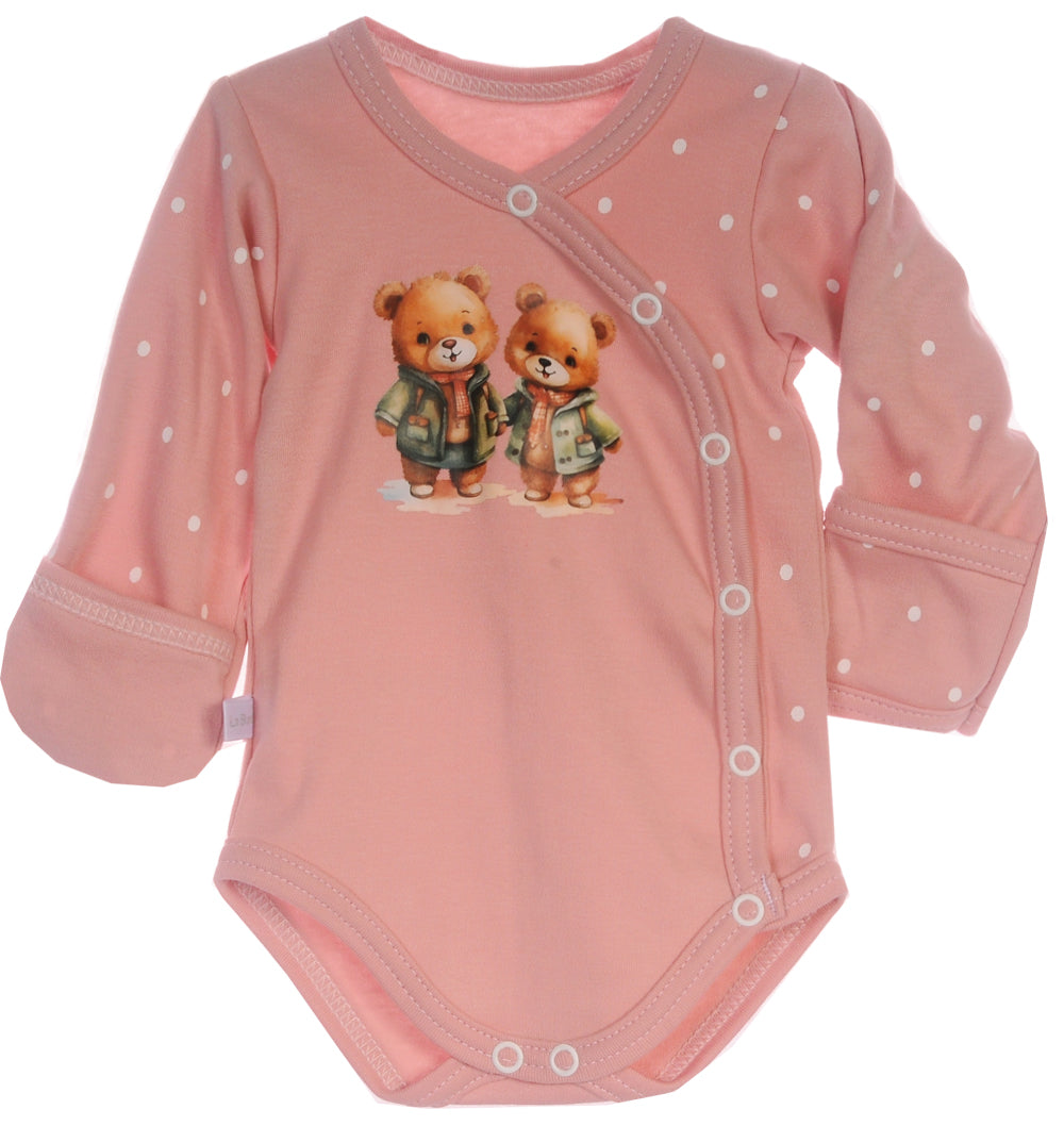 Baby Body Wickelbody langarm in Puderrosa mit Bärchen