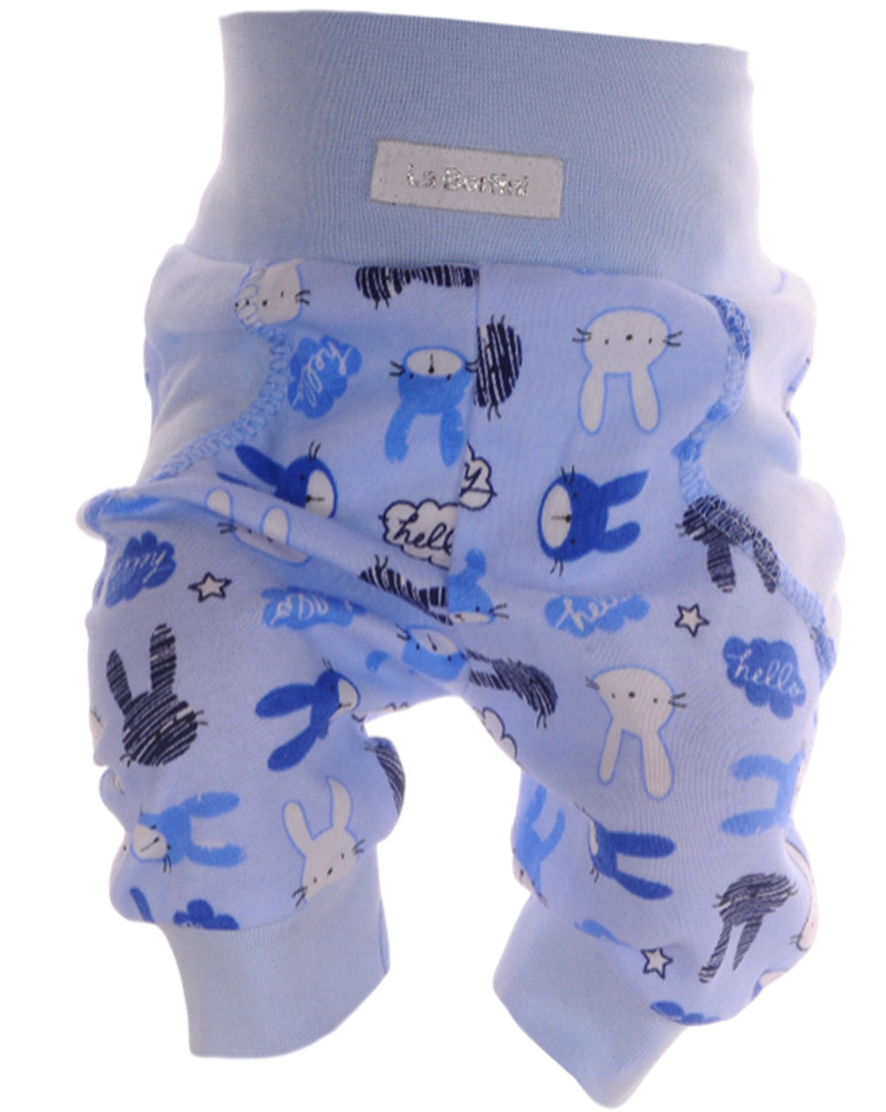– Babyhose mit Füßchen in Blau mit niedlichem Hasen-Muster