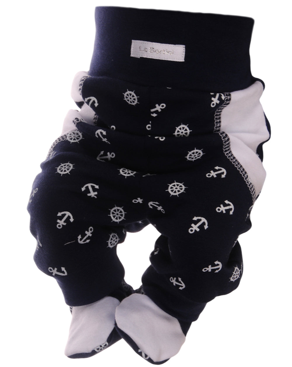 Baby Hose mit Füßchen in Blau mit maritimem Anker Muster