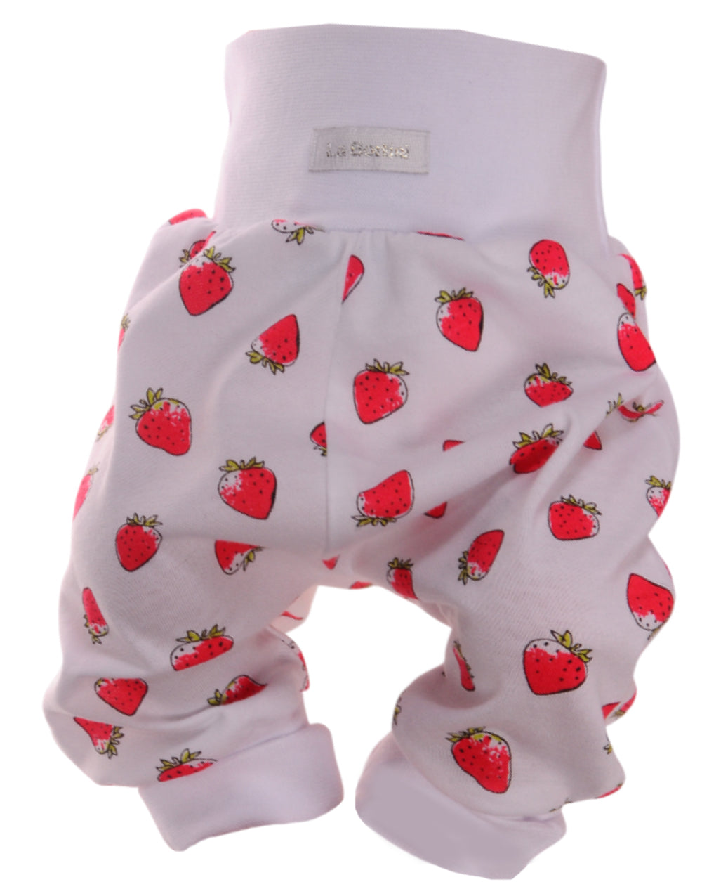 – Babyhose ohne Füßchen in Weiß mit süßem Erdbeermuster