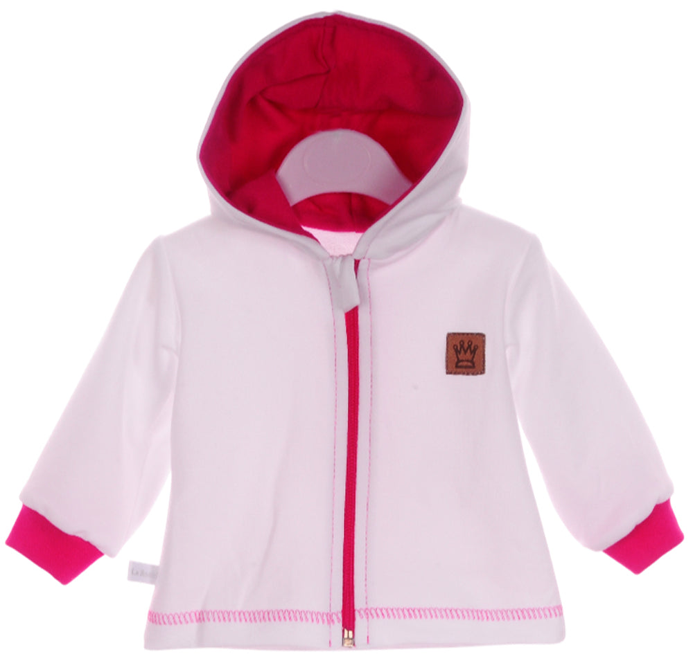 Baby Jacke Swetjacke mit Kapuze in Weiß Pink
