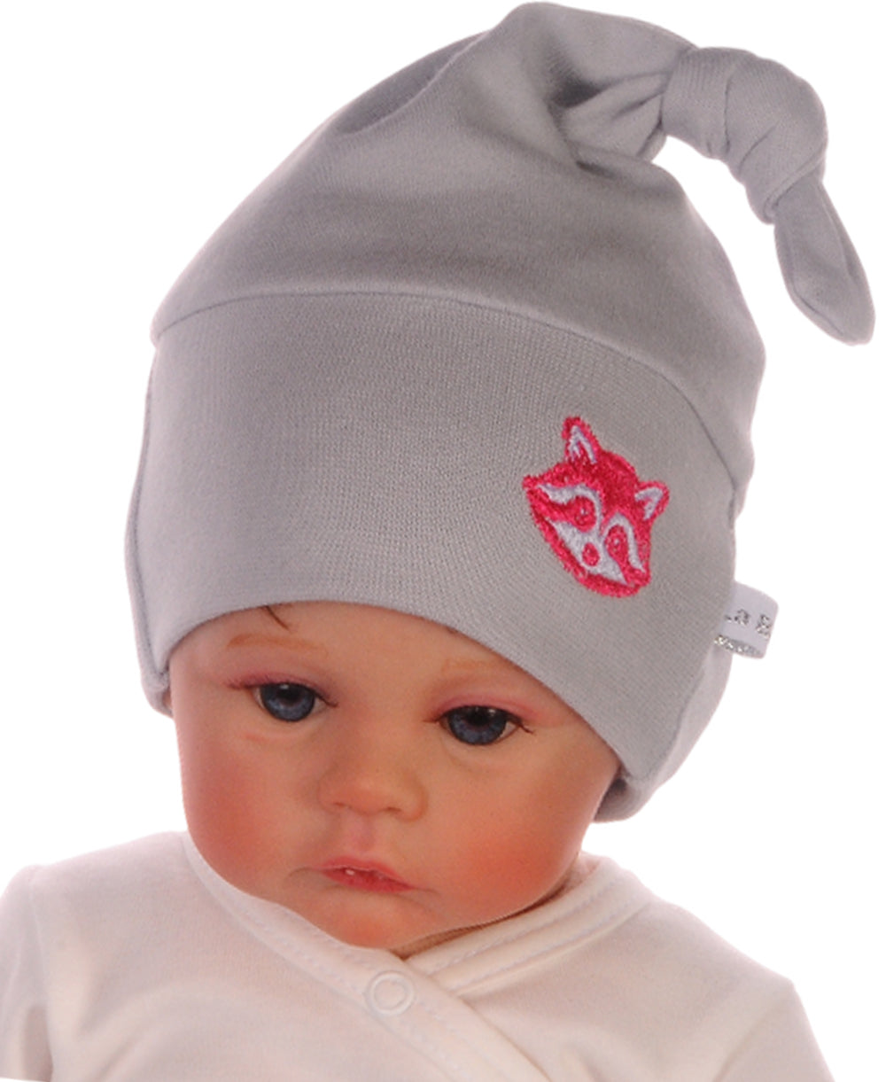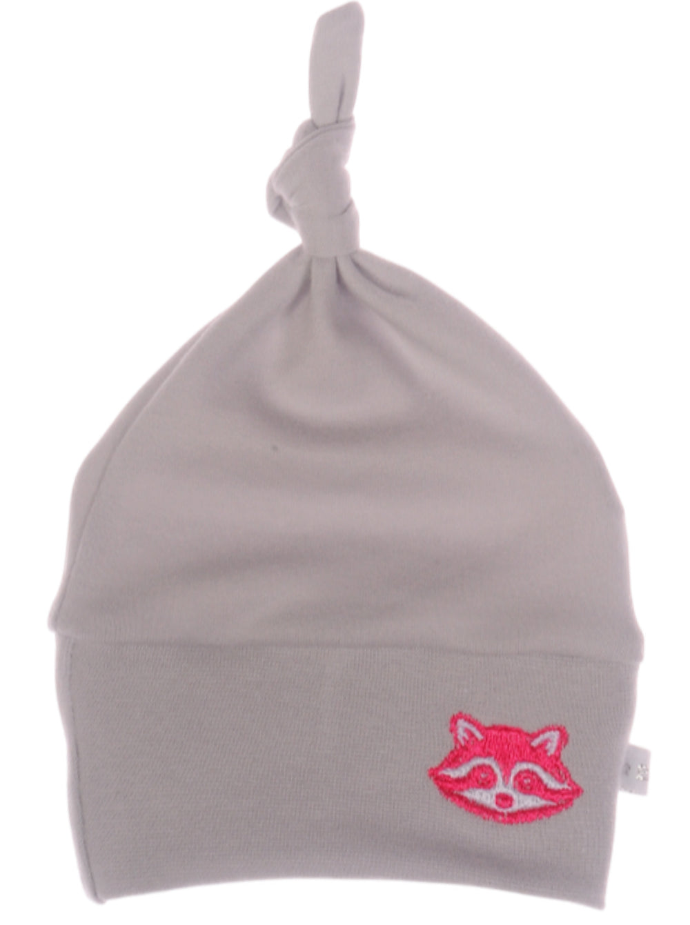 Baby Mütze Knotenmütze für Neugeborene in Grau Pink