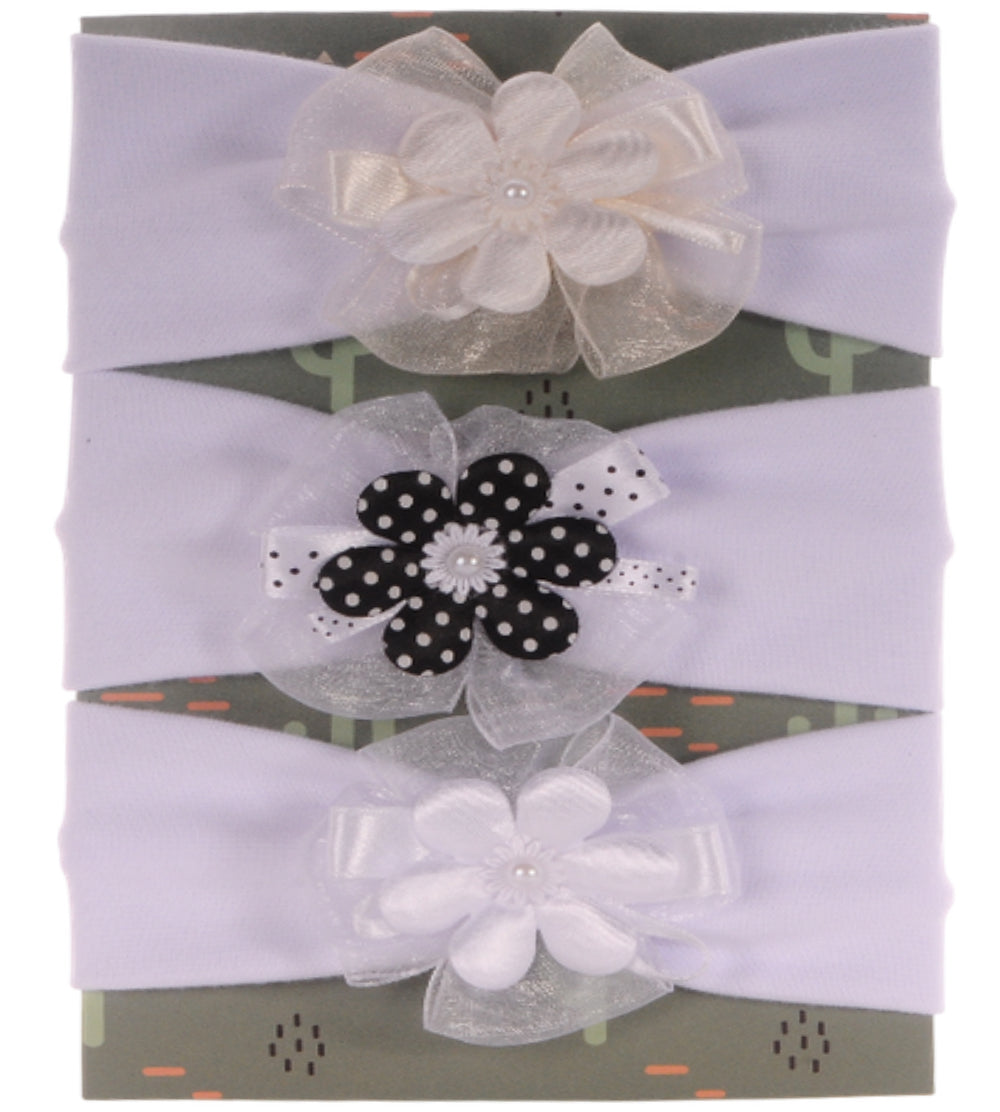 Baby Stirnbänder 3er Pack Stirnband in Weiß mit bunten Blumen