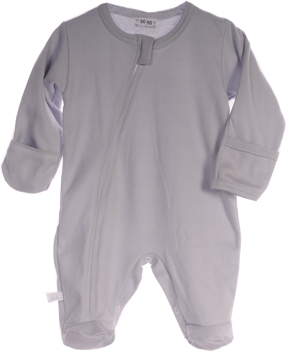 Strampler mit extra langen Ärmeln und Kratzschutz an Ärmelenden, einem Frontreißverschluss mit Kinnschutz, und Druckknöpfen im Schritt, in angenehm weicher Baumwoll-Qualität. Farbe: Grau.Schlafstrampler lässt sich an den Händen umschlagen, so bleiben die Hände schön warm und zusätzlich wird das Gesicht des Babys vor Kratzern bewahrt. Material: 100% Baumwolle