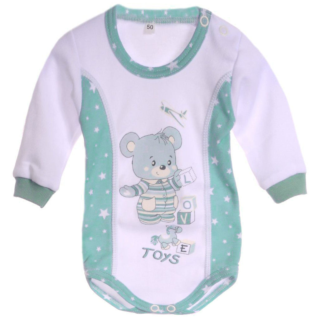 Body langarm in Weiß Mint mit Bärchen Aufdruck