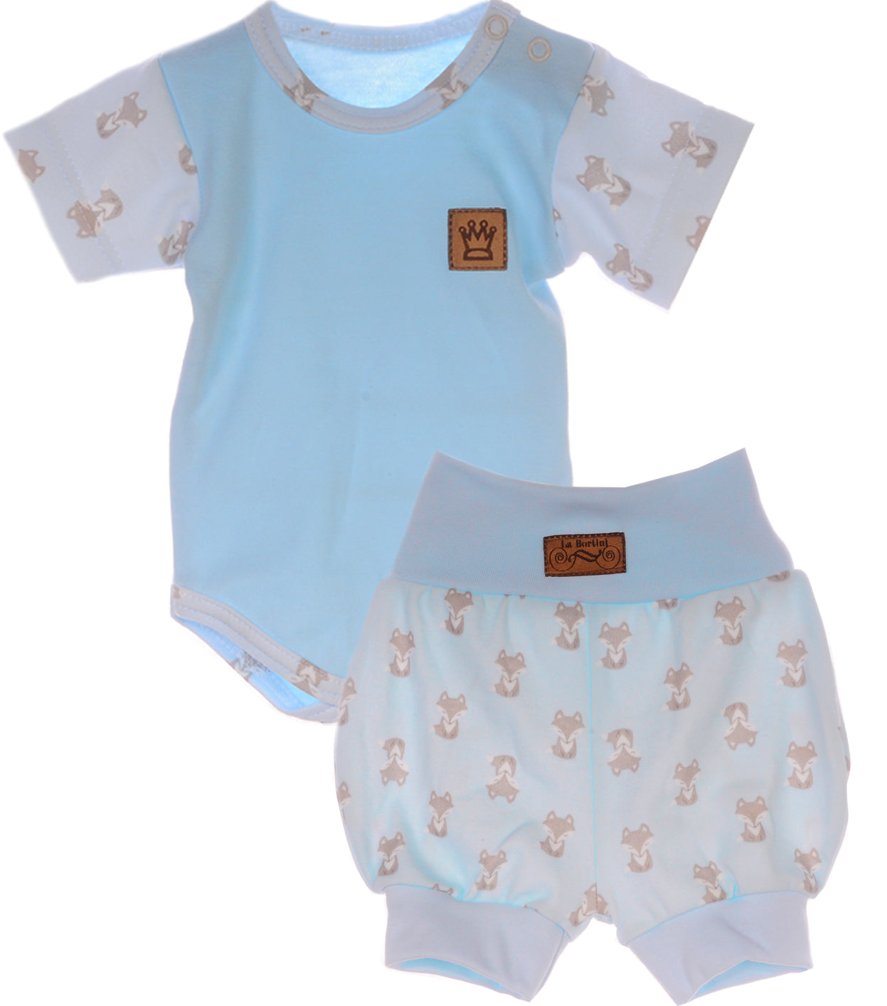 Body und Shorts Baby Anzug 2tlg in Altblau mit Fuchsen Muster