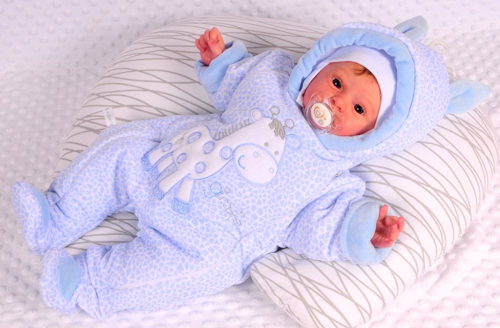 Im blau gemusterten Design mit niedlicher Giraffen-Stickerei ist der Overall ein echter Hingucker. Zwei praktische Reißverschlüsse vorne erleichtern das An- und Ausziehen, sodass Ihr Baby schnell und bequem eingepackt ist. Die Kapuze bietet zusätzlichen Schutz und macht das Outfit perfekt.