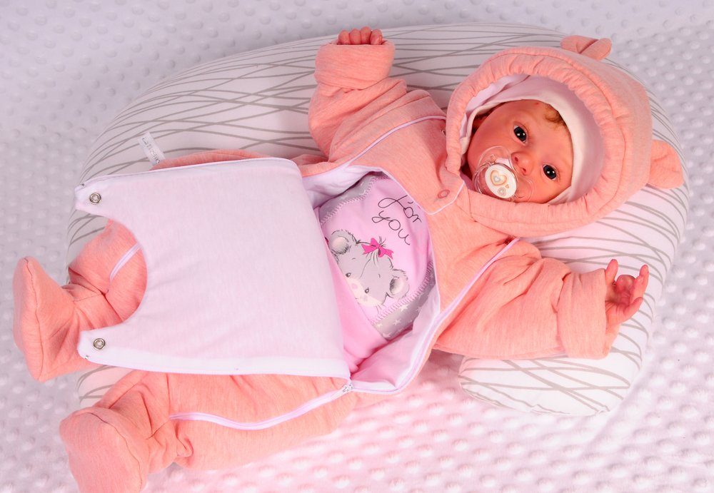 Baby Einteiler mit Kapuze - Wagenanzug - in angenehm weicher Baumwoll-Qualität.