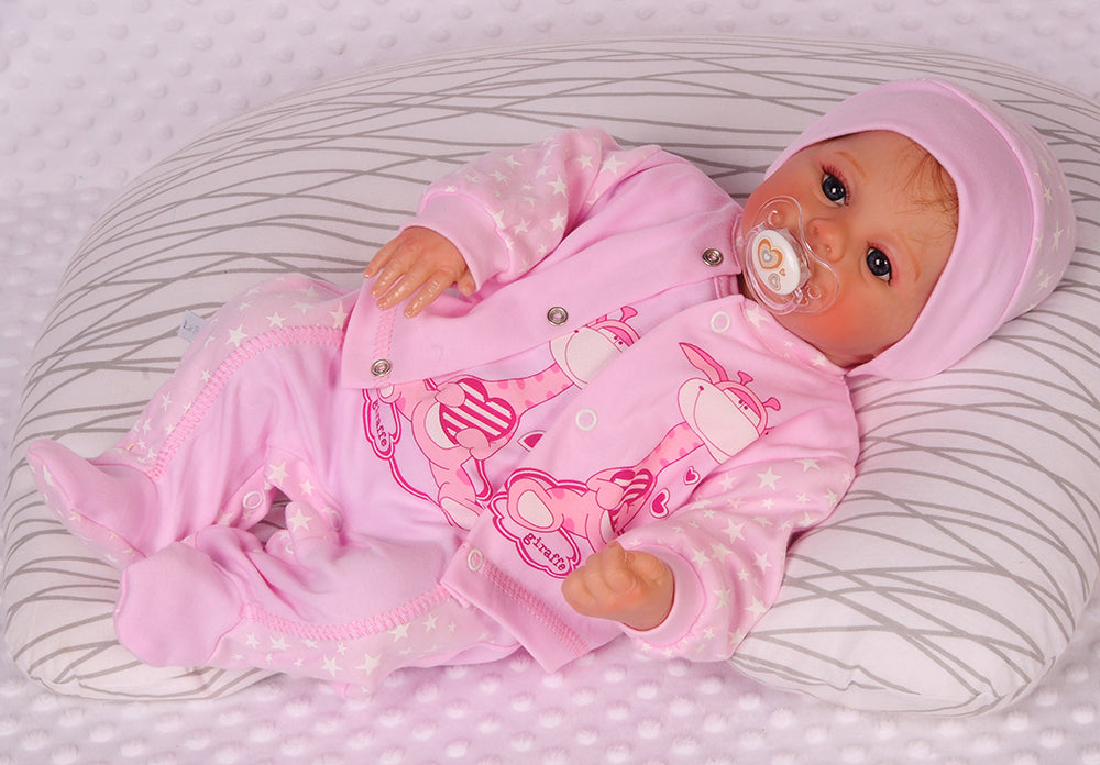 Strampler Mütze und Hemdchen Baby Anzug in Rosa mit Giraffen