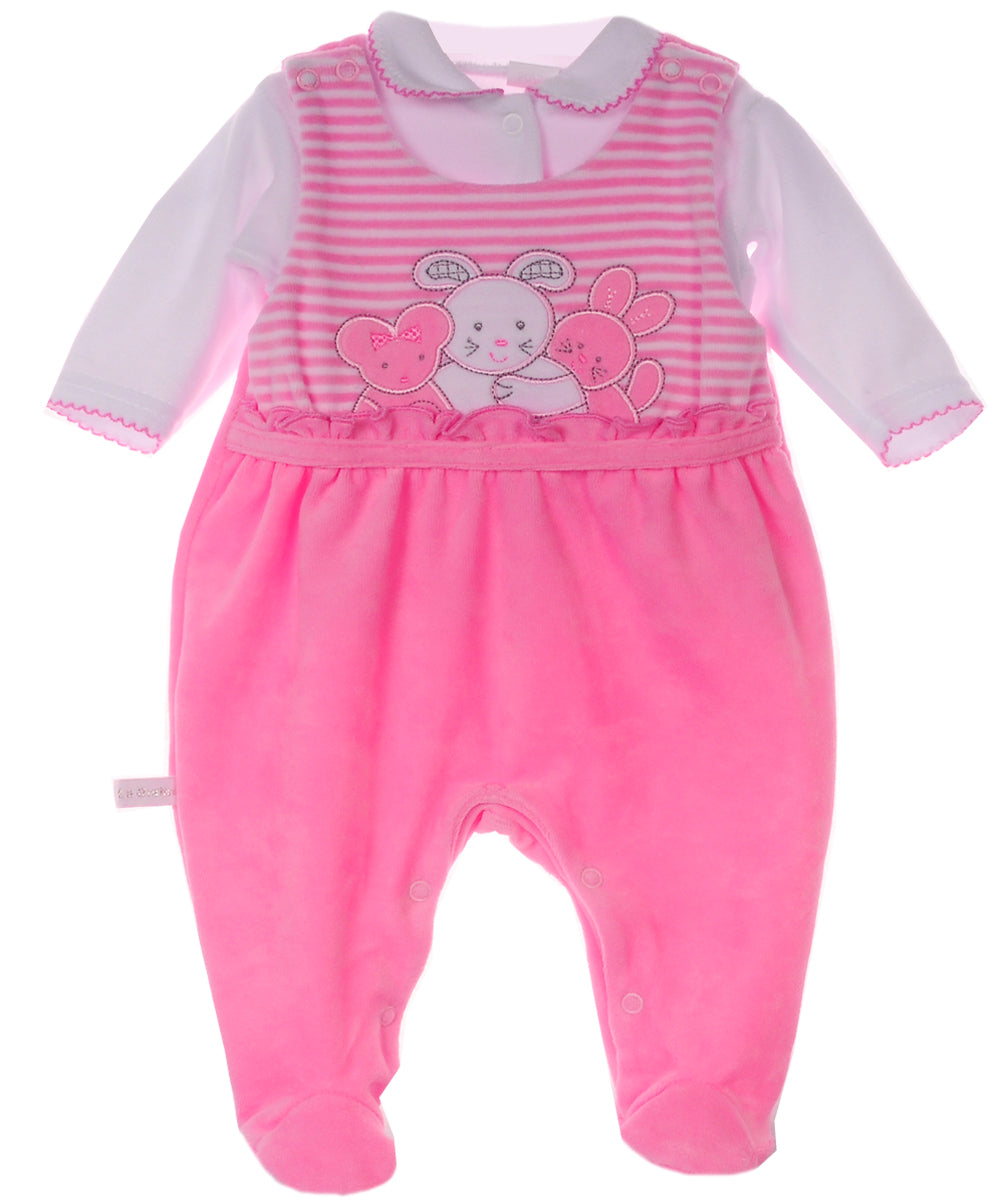 Strampler und Hemdchen Baby Anzug aus Velours in Rosa mit Tieren