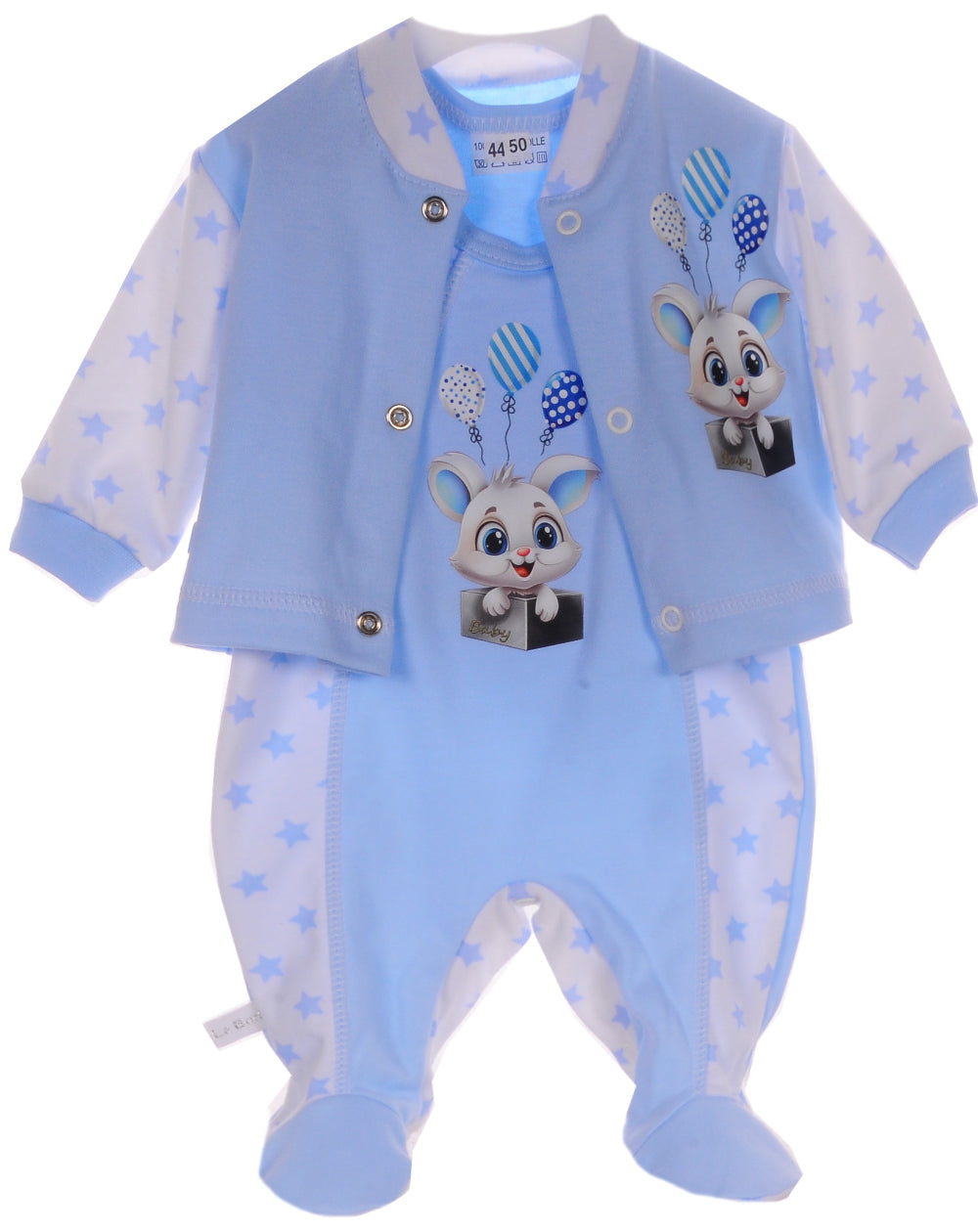 Strampler und Hemdchen Baby Anzug in Blau mit Häschen