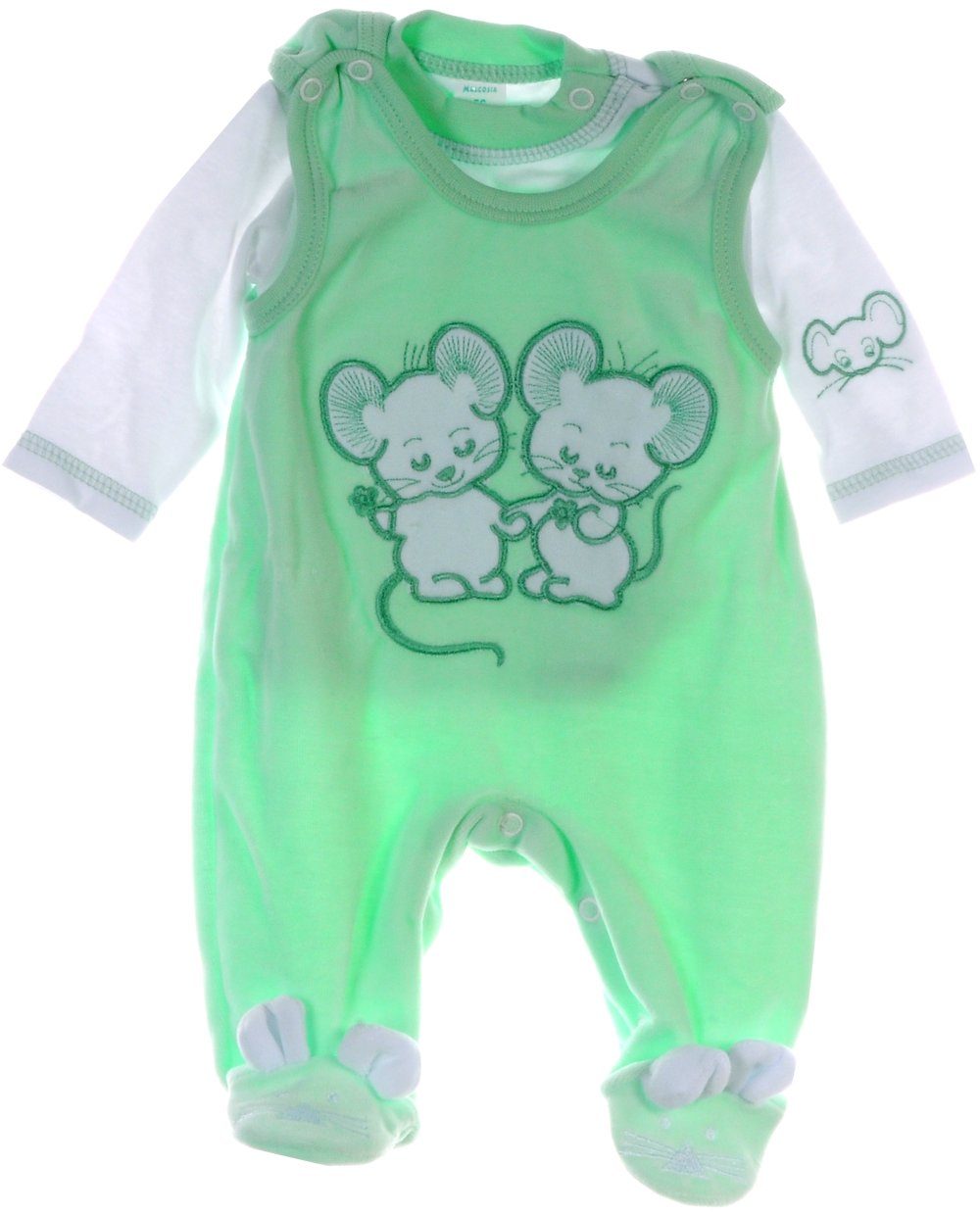 Wunderschönes 2-teiliges Set bestehend aus einem Strampler in Grün aus Veloursstoff und einem Langarmshirt in Weiß aus 100% Baumwolle ohne Muster. Dieses Set ist speziell für Herbst und Winter geeignet und in verschiedenen Größen vorrätig.