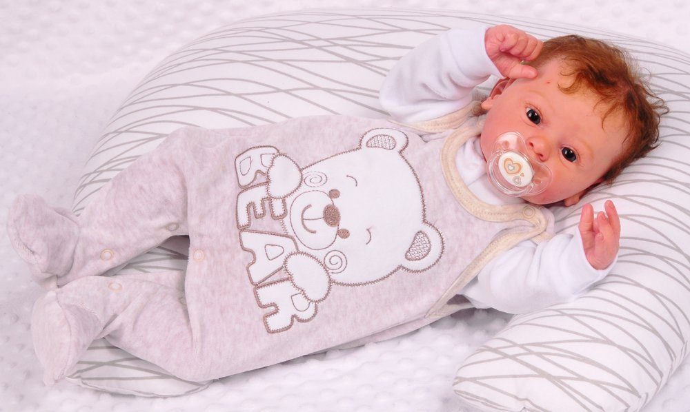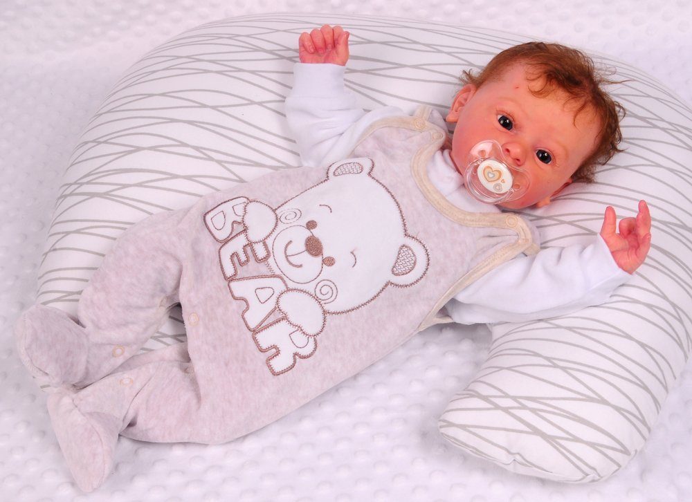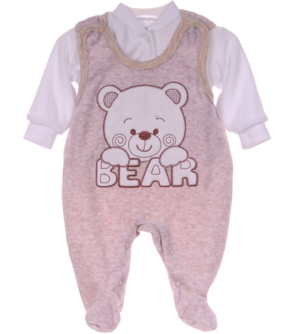Strampler und Shirt Baby Anzug in Beige weiß aus Velours mit Bärchen