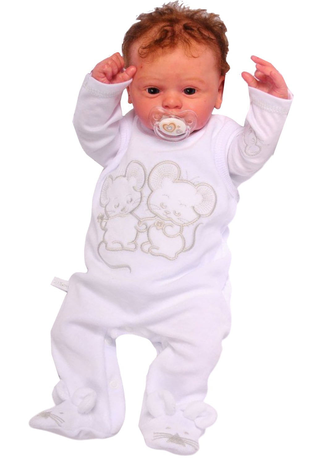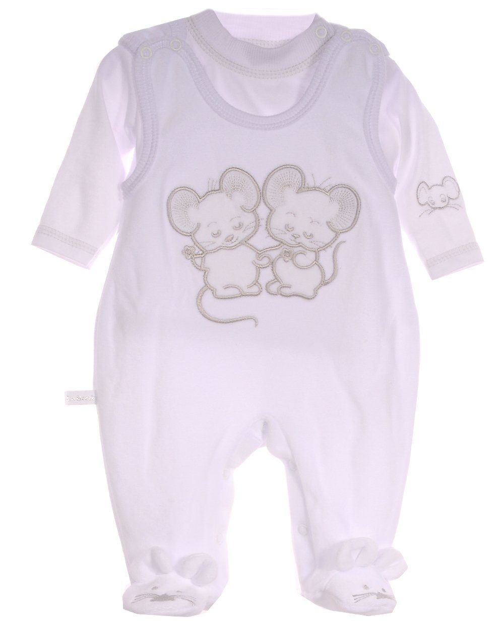 Strampler und Shirt Baby Anzug warm in Weiß mit Mäuschen